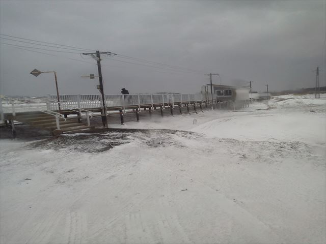 ![]() さらに突風と大雪の五能線沿いを進む |