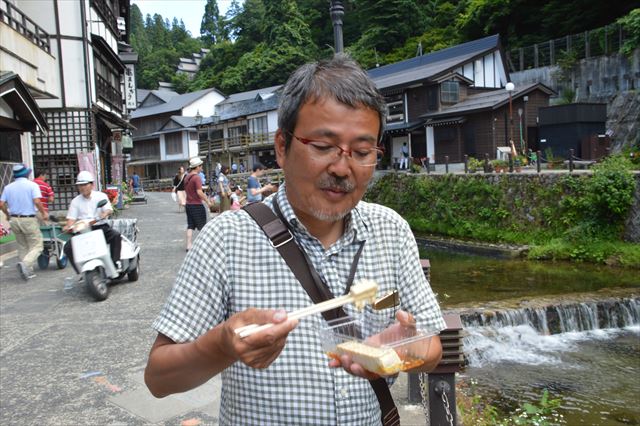 銀山温泉へ向かう 川沿いの遊歩道を一周する |