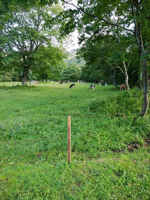 ![]() 早朝はゲート左側を抜けて牧場に入る |