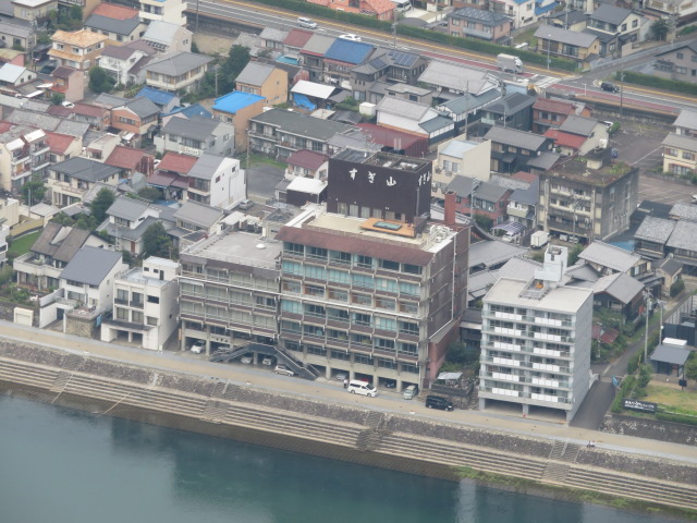 城から今日泊まる旅館が見える 屋上露天風呂も |