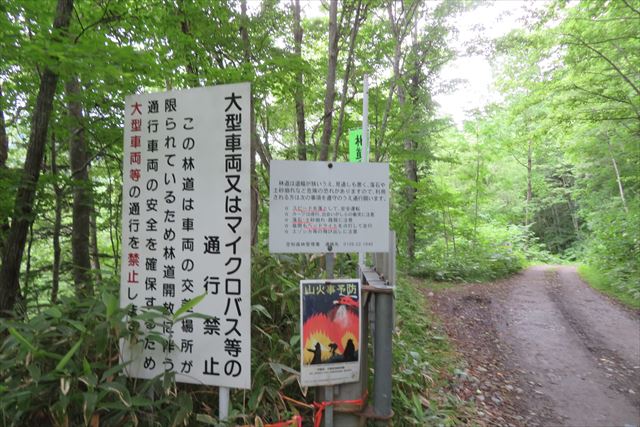 白銀橋を渡って狭い林道を走るとゲートがある |