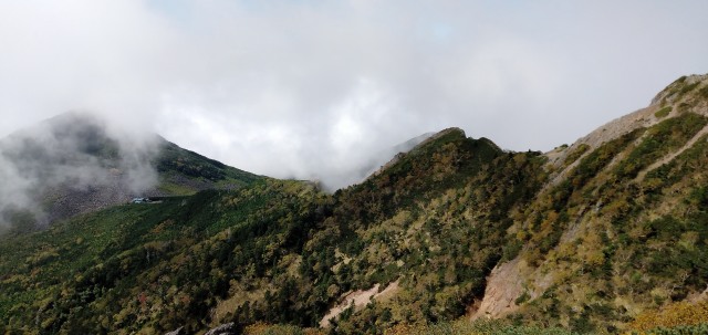 権現岳山頂(2,715m) 10:45 ![]() やっとお昼ごはんを岩場で食べる 醤油とんこつスープで炊いたラーメン弁当 ![]() 一瞬晴れたので山頂を撮ってみた |