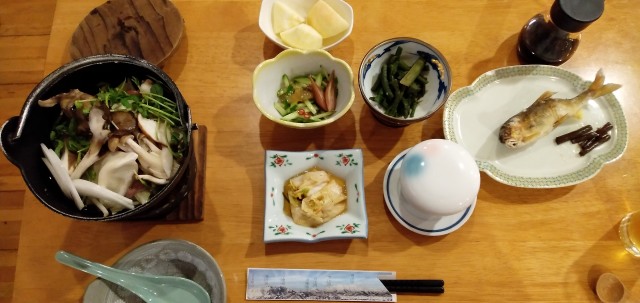 ![]() 今日の宿は水上宝台樹スキー場前の民宿 夕食 |