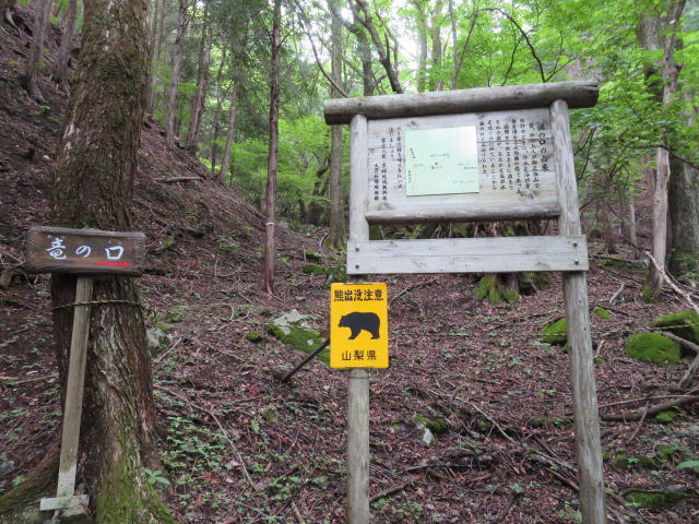 林道(作業道)をかなり歩き、急登を登ったところ 水場 竜(龍)の口 |