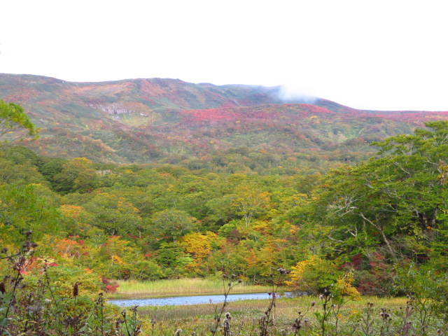 東北の山の紅葉を見に行くも天候が台風14号の影響で不順