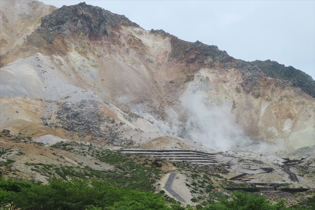山腹の噴煙がすごい |