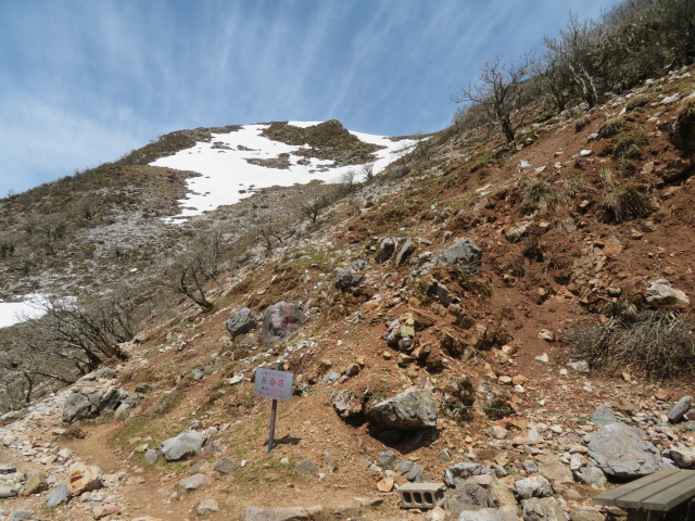 2022年4月 伊吹山(いぶきやま) 1377m 豪雪で有名な山 4/1 まだ相当の雪が残っていたので、ピッケル+ アイゼン10本歯かストック+チェーンアイゼンか 悩んだが、直前に暑い日が続いたので軽装備にして 正解だった。 まだお花は早くて見られなかったし、残雪の腐った雪 のもぐること。 暑くて大変な山行だった。